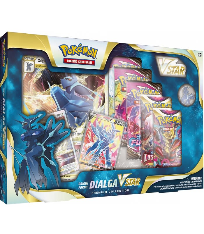 Controla el tiempo con la Caja de colección Pokémon – Dialga Origen V-ASTRO, una edición en español que presenta al legendario Pokémon de Sinnoh en su poderosa forma Origen. Esta caja combina elegancia y potencia, con cartas promocionales exclusivas y sobres llenos de acción. Perfecta para coleccionistas y jugadores que buscan añadir una de las cartas más imponentes del JCC Pokémon a su colección.